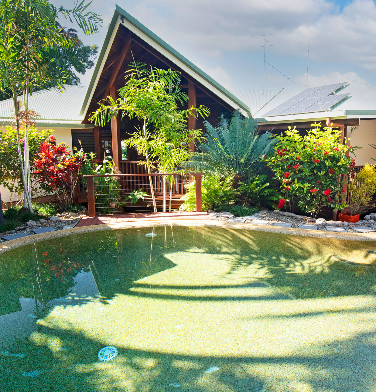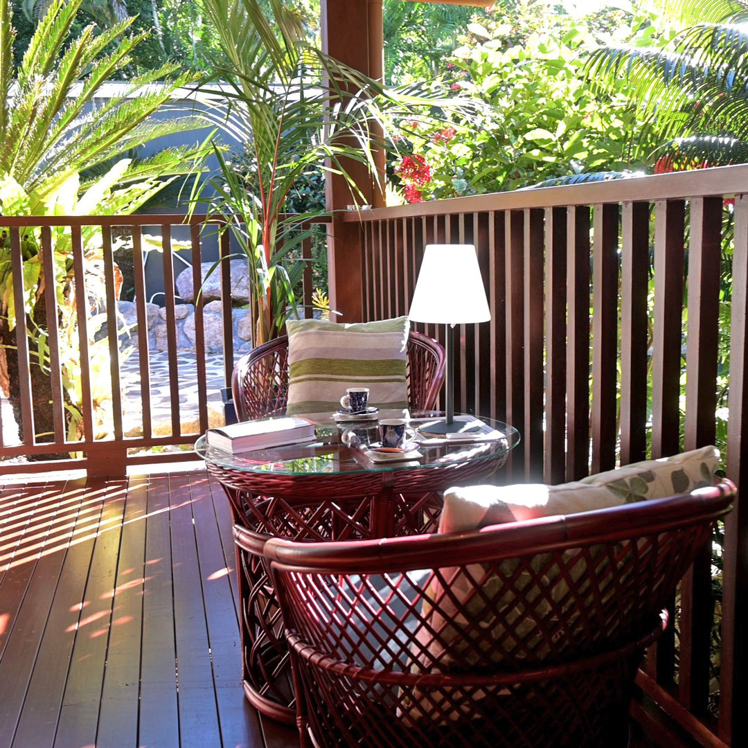 Relax in tropical surroundings, cool off in the pool, un-wind on the balcony.