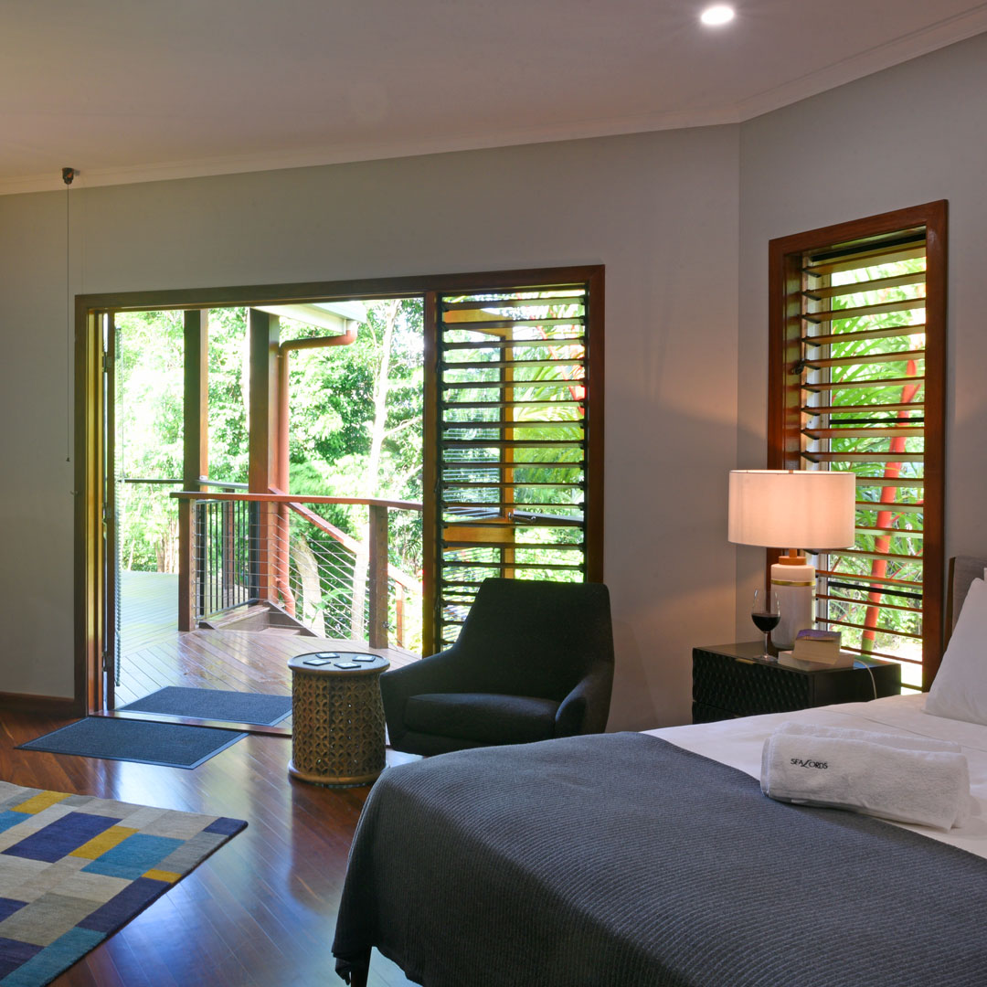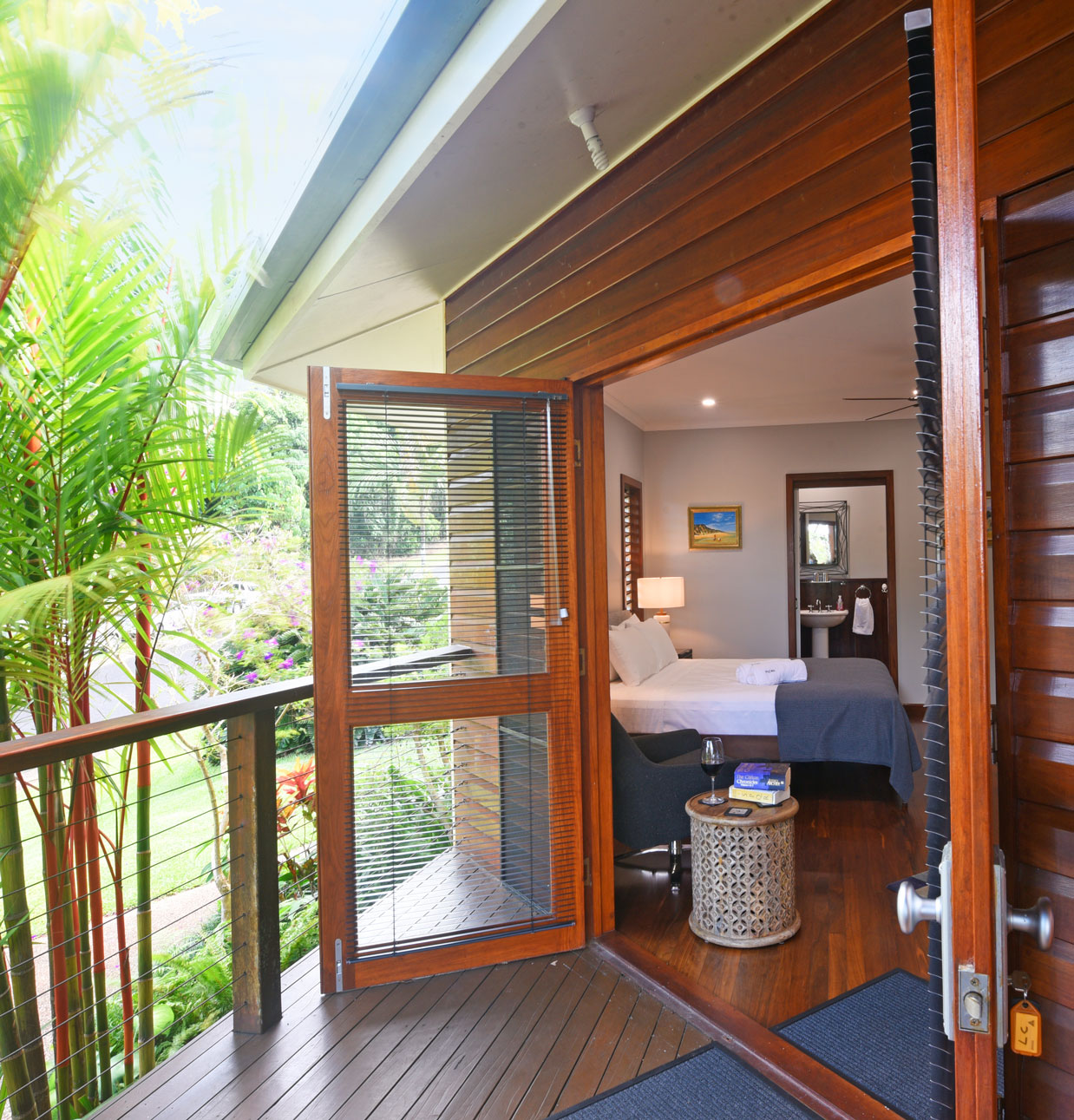 Choose from two private, air-conditioned ensuite rooms with your own balcony or a self-contained bungalow.