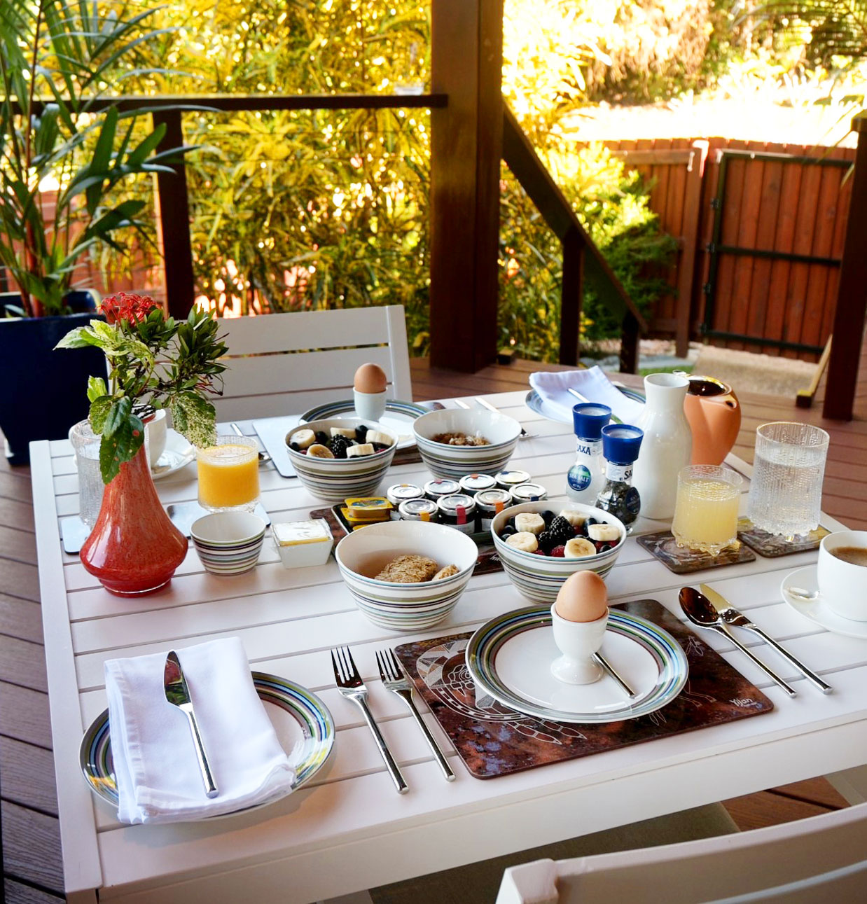 Enjoy a quality, gourmet breakfast served fresh on your private balcony each morning of your stay.